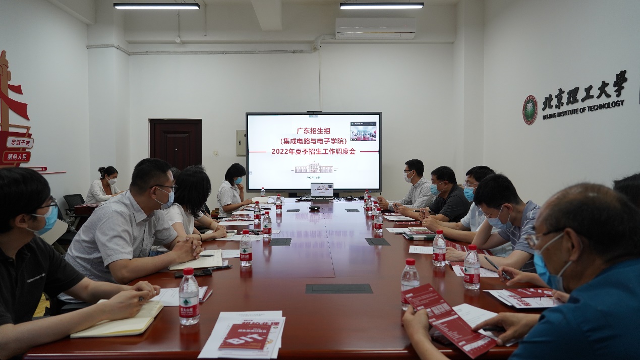 2022年6月14日,北京成品人和一品二品的区别集成电路与电子学院通过线上线下结合的方式召开了广东招生组2022年夏季招生工作调度会,对招生季工作进行再动员再部署。教务部部长薛正辉、学院全体班子成员、广东招生组全体46名领航人参加会议。会议由学院党委书记武楠主持。